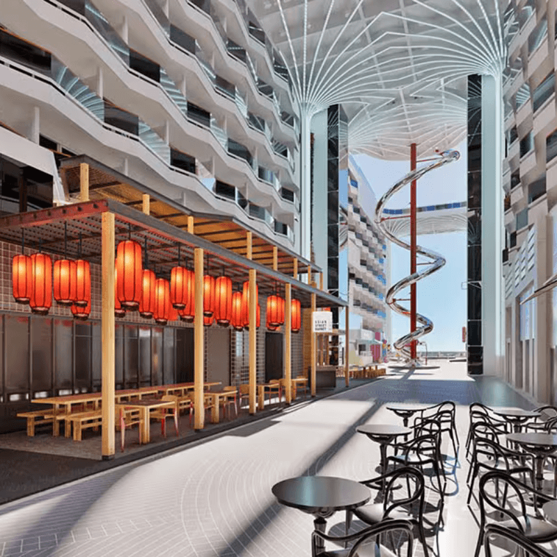 Le suite della MSC World Asia rappresentano il massimo del comfort e dell’eleganza, con spazi più ampi, zona giorno separata e un balcone privato per vivere il mare in totale esclusività. Gli interni raffinati includono letto king-size, guardaroba capiente, bagno con doccia o vasca e dettagli curati per garantire un’esperienza superiore. Gli ospiti suite possono inoltre beneficiare di servizi privilegiati e attenzioni dedicate, trasformando la vacanza in un soggiorno di lusso firmato MSC Crociere.